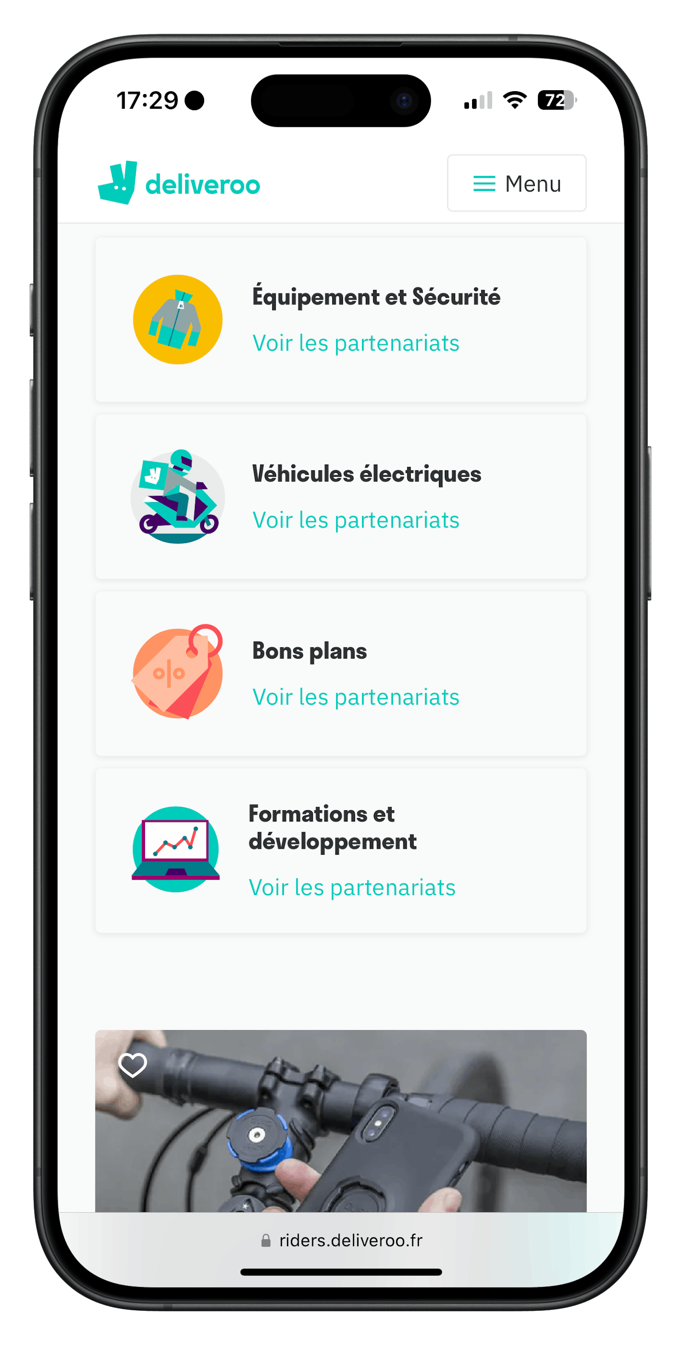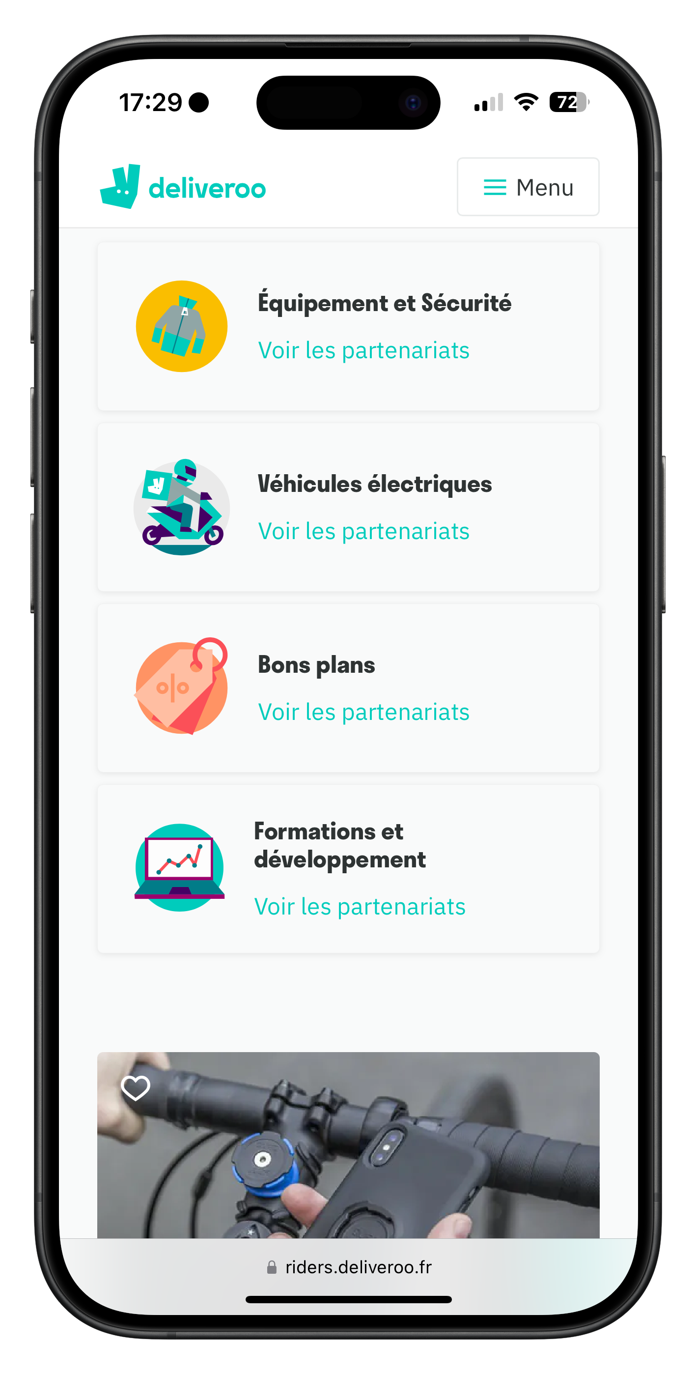 *Pour accéder aux avantages réservés aux livreurs utilisant l'application Deliveroo, il vous suffit de vous connecter à l'application Rider et d'effectuer votre première prestation de service.